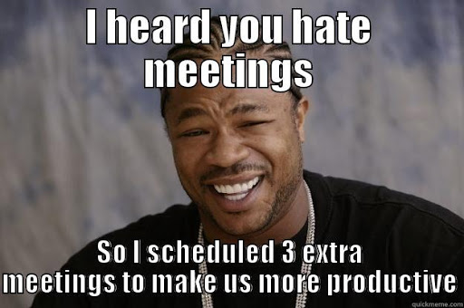 Meeting: A period of time used to talk about the things you should do if you were not in a meeting.https://twitter.com/JoinCue/status/1224600882785873920 …