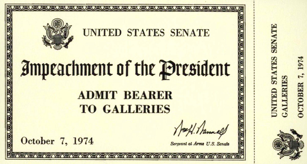 Pre-printed ticket for Richard Nixon’s trial by Senate after impeachment, October 1974—never used because Nixon resigned:pic.twitter.com/dSK2skRP2Q