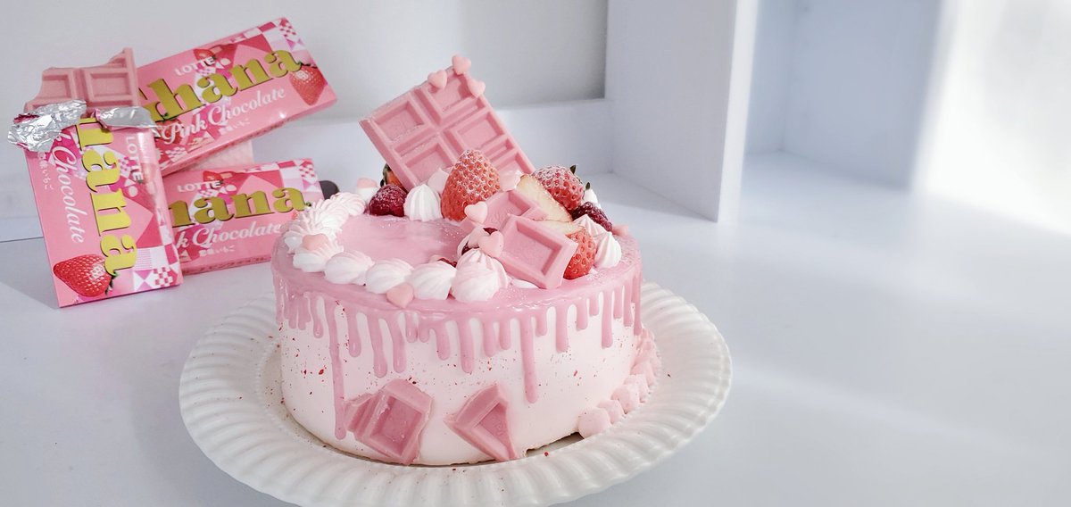 ピンク色の板チョコ可愛すぎて形を残したままデコレーションしたよぉおお