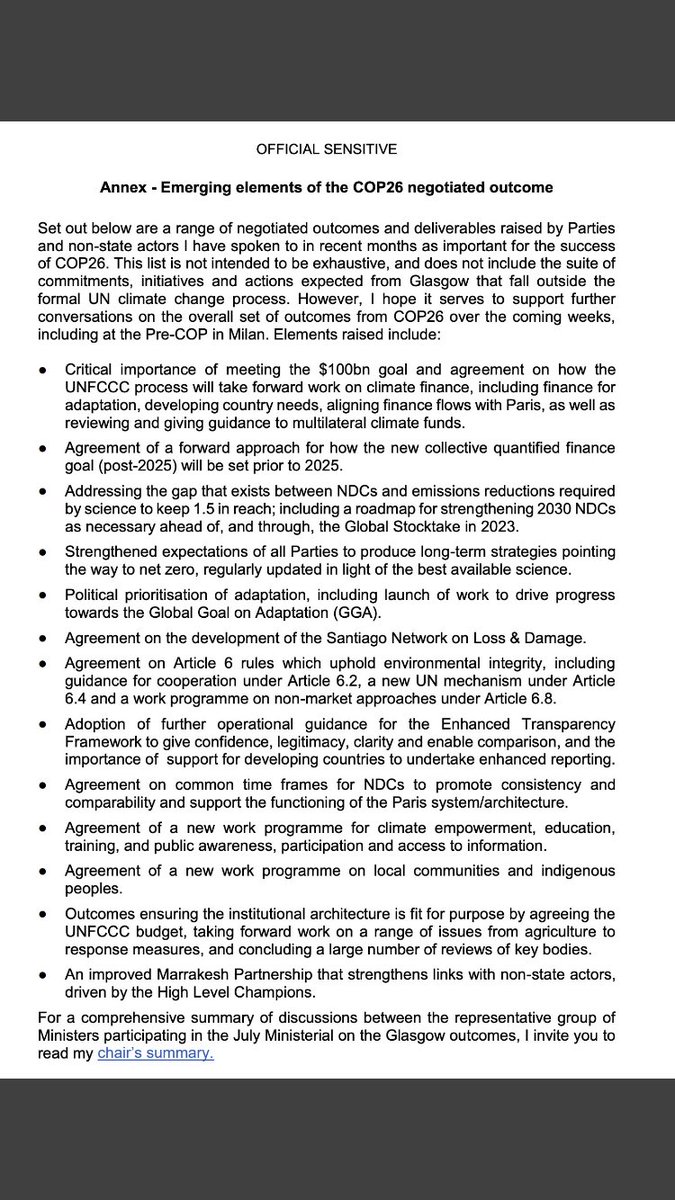 The ‘emerging elements’ does not include a date we end fossil fuel finance. That means climate breakdown gets worse. https://www.cop26climateactionplan.com/ gives a date. Be brave