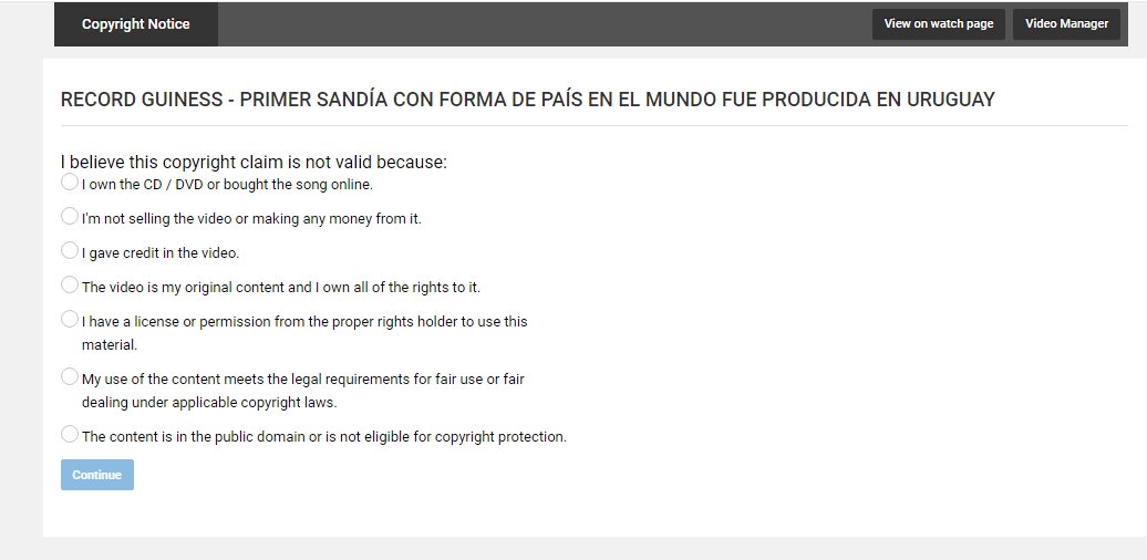 @TeamYouTube Where is the option that says "The content claim is false"? Where is the option demanding that the claimant demonstrate that he owns the rights of what he is claiming. YT assigning the rights of something they have not even shown that belongs to them??pic.twitter.com/pIXHIBpRRJ