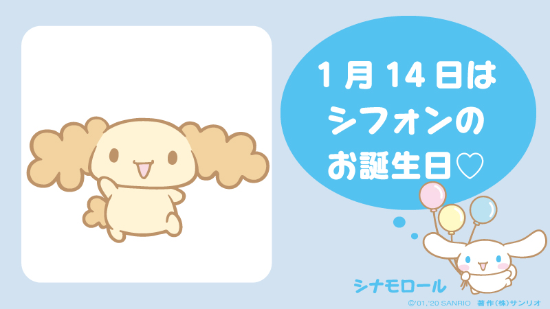 #シナモロール#いつも元気いっぱい#細かいことは気にしない#ムードメーカー#1月14日#サンリオキャラにおめでとう http://sanrio.eng.mg/9ca37 pic.twitter.com/aRN4AwC4x3