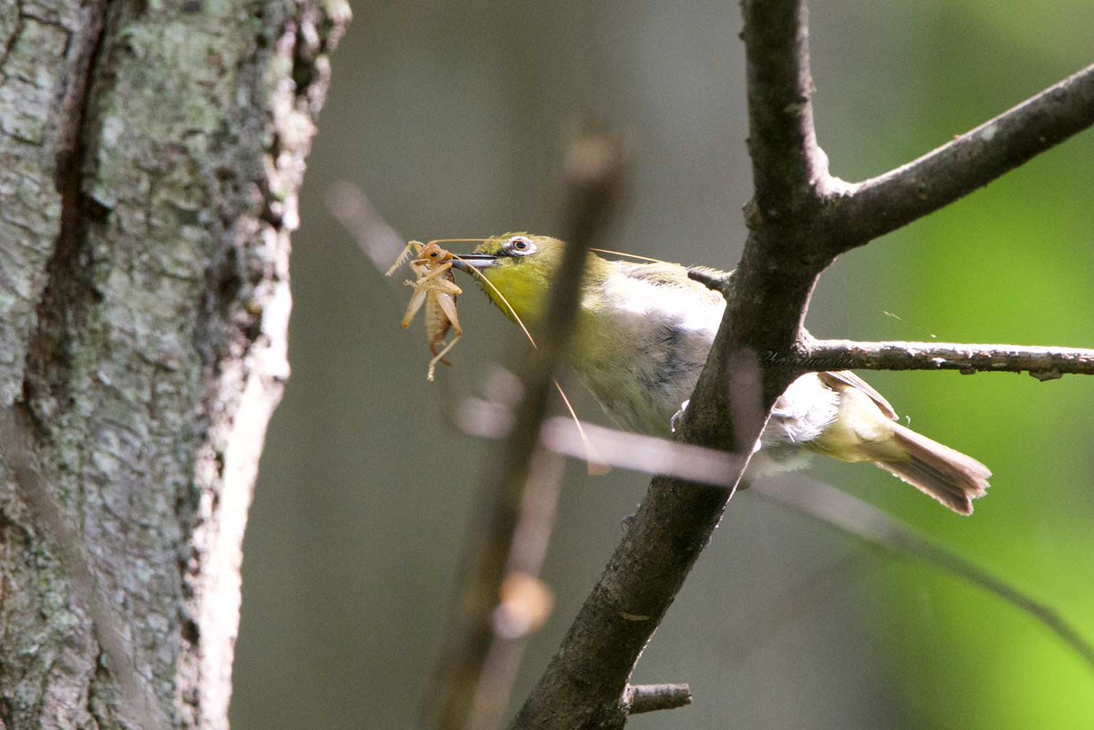 可愛いメジロさん、少しだけ野生の顔を。 アーカイブより、2014年9月撮影です。 藪で何かチョロチョロしていたのを見て、出て来るのをのんびりと待っていたら、脇の方からサッと影が来たのが見えまして、急いで構えたらメジロさんでした。何やら咥えている様子、、その時はちょっとドキッとしました。pic.twitter.com/kivzTRfyEF