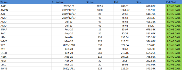In yesterday's trading session, we have seen some strong trending stocks such as $AAPL, $AMD, $JPM, and $BAC keep trending higher as few big options bets continued pours money into these candidates.pic.twitter.com/oI29mPGlMN