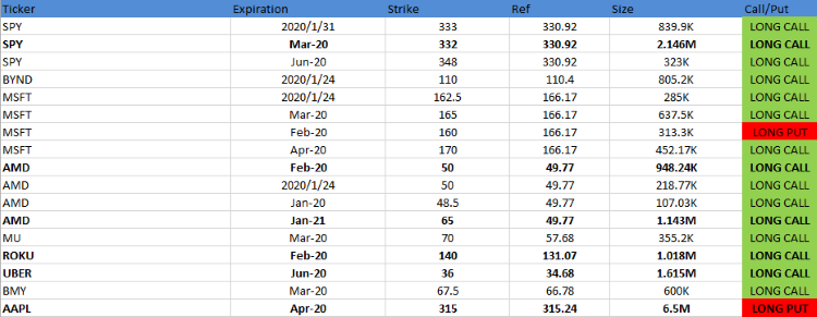 Today #OptionsTrading we detected $SPY over 3M valued call contracts purchased for the future expiration while the #techs as $MSFT $AMD, $MU, $ROKU also got involved with this sentiment. Besides, notable bullish bets include $BYND, $UBER $BMY. $AAPL triggered some short interestspic.twitter.com/gkQv4G8Qws