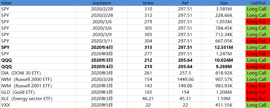 #OptionsTrading detected on 2/27 upon the major indices #ETF $SPY, $QQQ, $DIA, $IWM. Besides on some protective names like $GLD, $VXX. $XLE still the biggest losers among the major #Sectorspic.twitter.com/IwXqHp8KXB