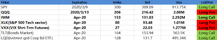Here we are, again it's 3/2 #OptionsTrading upon the broader #Markets! What we have here a quite #bearish sentiment toward #tech $QQQ, $XLK. Besides, $IWM is attracting some bulls' attention there, and #Traders are continually going short on $VXX!pic.twitter.com/vDX9FfiR8M