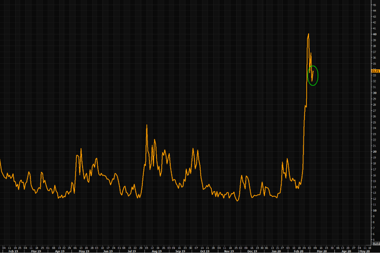 We had a good #bounce in #Markets so far. But volatility stayed elevated. $VIX trading around 33-34 is pricing approx 2% daily moves for the $SPX.pic.twitter.com/XMNWEq28wx