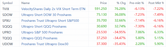 ETFs shorting the market are declining, so does the volatility $TVIX, while ETF leveraged in buying the market advanced.
