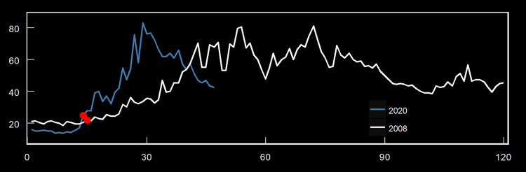 $VIX 2008 vs 2020