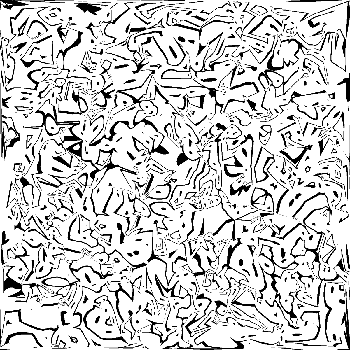 Forgot the title: "Pareidolia" (... actually, it's the displacement distance of vertices on a delaunay mesh, +mod +step. Byproduct of some very early experimenting with shifted UVs. Also, Regl baby steps.)