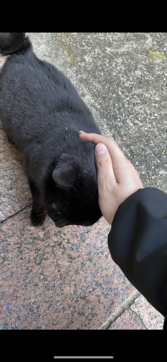 最近外の作業場に通ってるんですけどそこ行くまでの道にかなりの確率でこの人懐こいクロネコちゃんいて いつも定位置に座ってて撫でられ待ち 近づいたらニャアって言ってぶつかってくる サイコーpic.twitter.com/h0ozdVnEfh