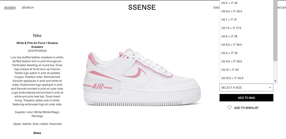 AD: Women's Nike Air Force 1 Shadow 'White/Magic Flamingo' now on SSENSE => http://bit.ly/2tppI9S pic.twitter.com/B7Ndk2PJhr