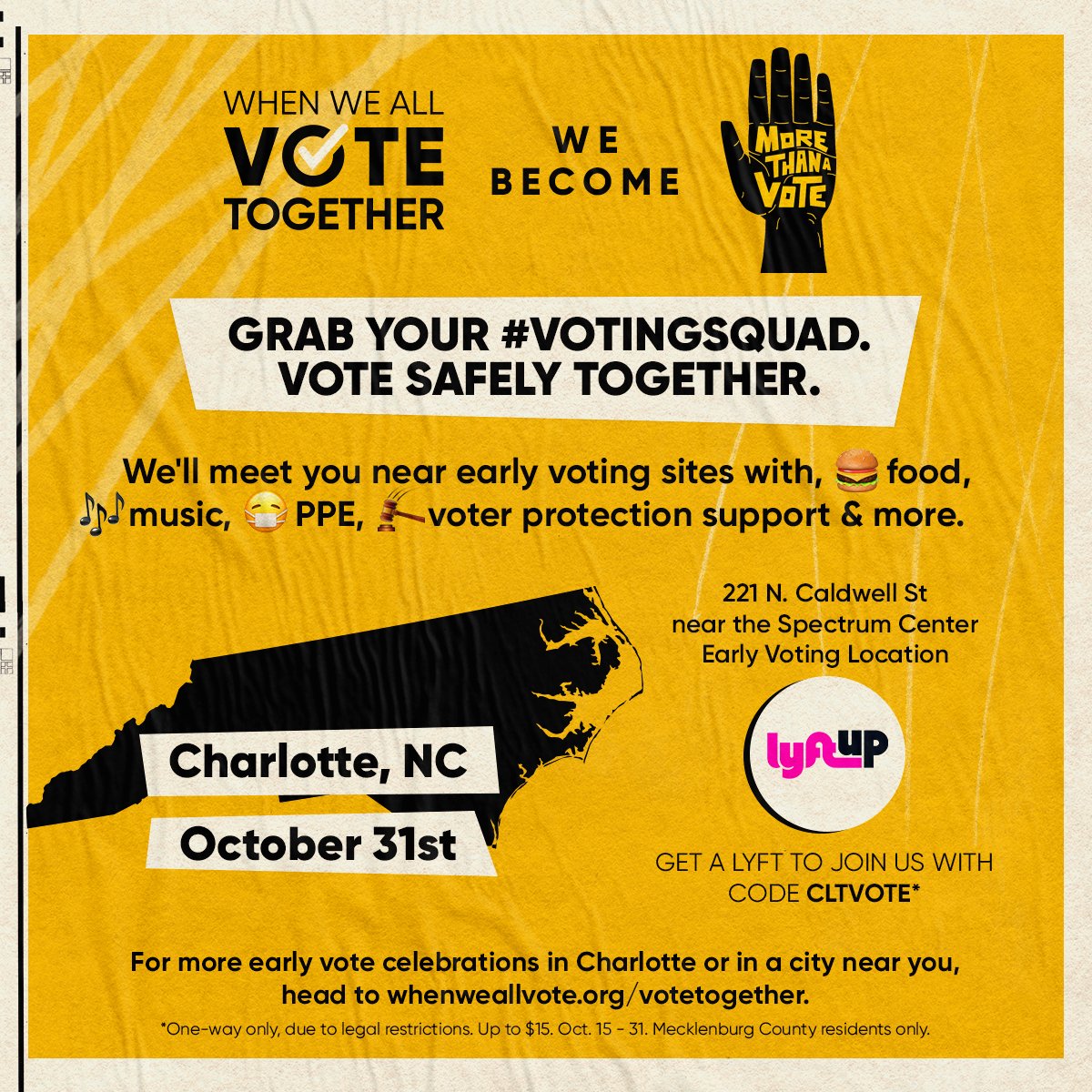 #VotingSquad and stop by our#VoteTogether celebration with@MoreThanAVote at the@Hornets’ Spectrum Center (near the early voting center!) You won’t want to miss an appearance from@Common