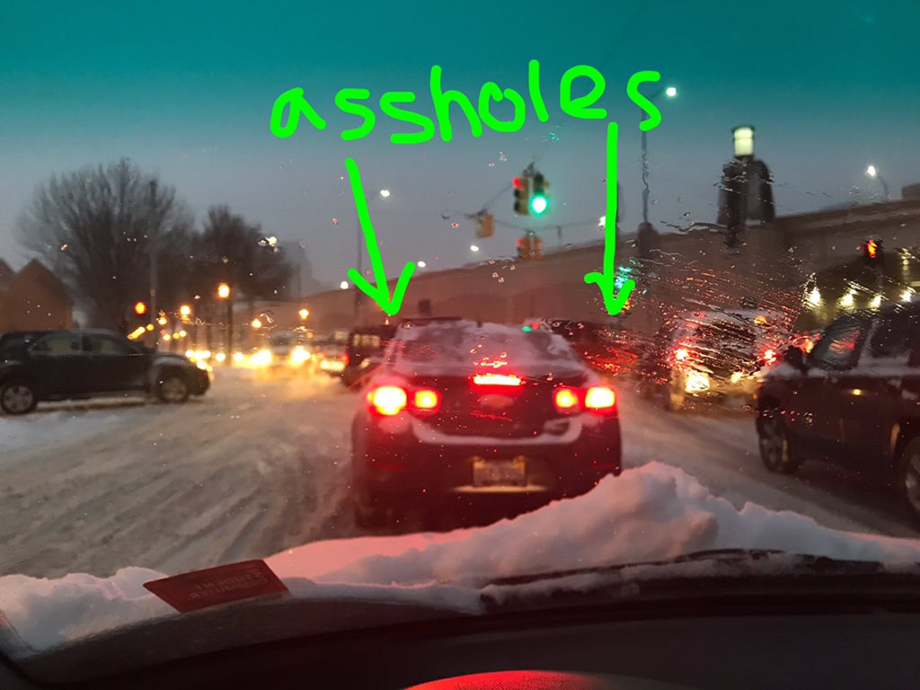 Its winter, the roads are getting awful. Reminder to NOT be that complete asshole who enters an intersection on a green when its too backed up to clear it... you're making all the opposite direction cars unable to move when the light changes.