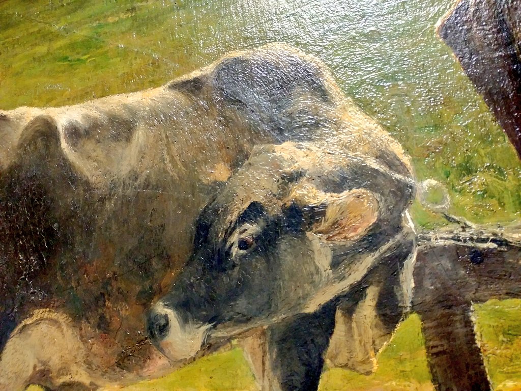 絵具を混ぜると色が濁り、画面が暗くなる だから混ぜず、純色を細かく配置する「分割技法」 印象派の点描で有名な画法だが、それをセガンティーニは独自に"線"描で磨き上げ、アルプスの陽光と澄んだ空気まで表す、晴朗無比の明るさを実現 する前の絵なので割と平凡な描写 でも光線への志向は仄見えるpic.twitter.com/OQVlh4LjtI