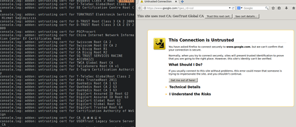 couldn't sleep last night of vacation > started writing Firefox addon that untrusts all root CAs & re-trusts lazilypic.twitter.com/8EJkrr7dav