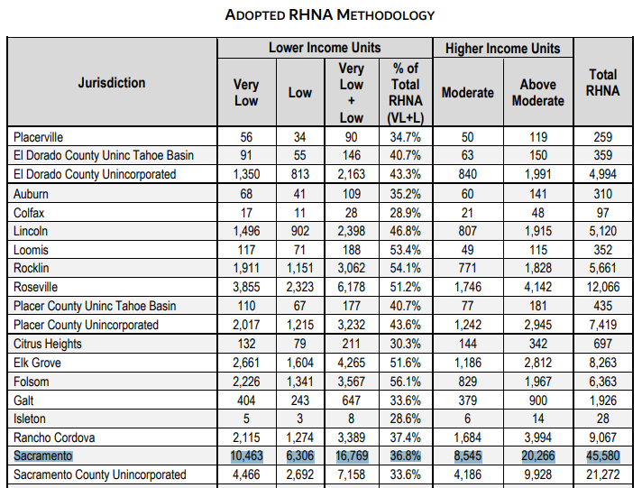 It's not just a SoCal RHNA quirk either. Sacramento is getting its targets doubled: 5th cycle: 4,944 ; 3,467 ; 4,482 ; 11,208 6th cycle: 10,463 ; 6,306 ; 8,545 ; 20,266pic.twitter.com/DsxF2h4Xp0