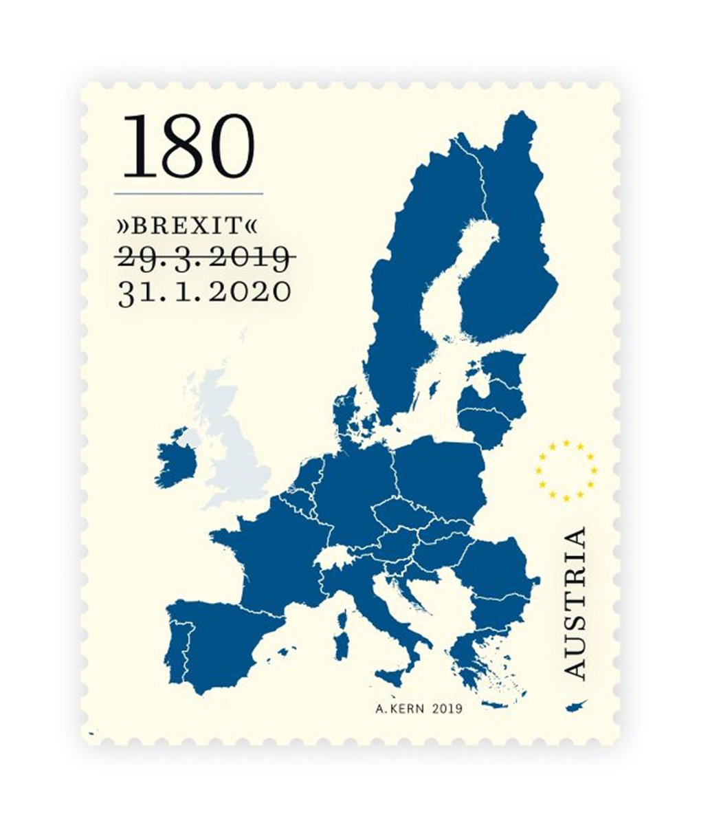 Special edition Brexit stamp in Austria. Fun fact: The crossed out date was not intentional - Österreich Post had thousands made for the original date and when it changed they decided not to waste them.pic.twitter.com/K4qVbGdU6w