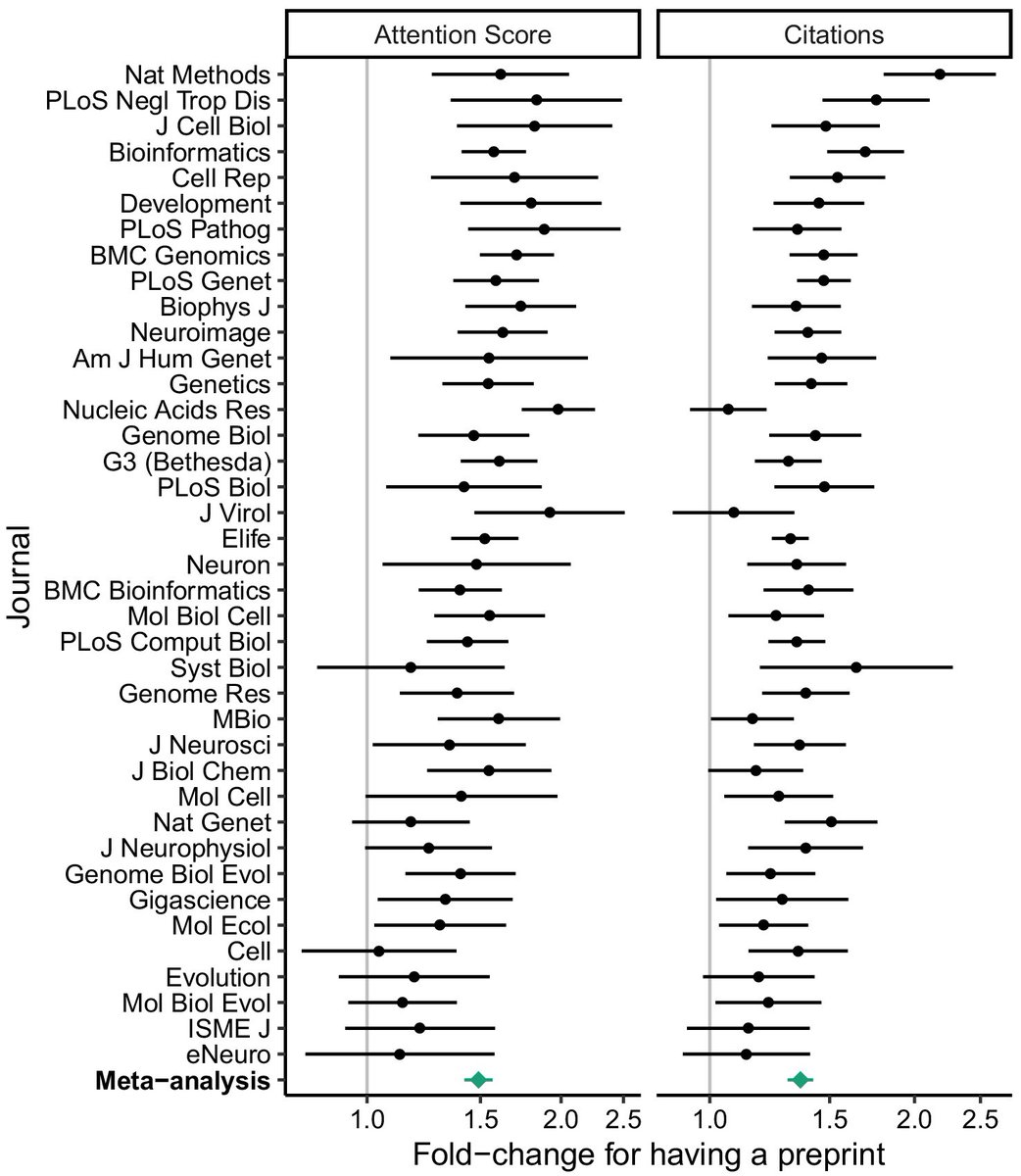 Peer-reviewed articles that were posted previously as a preprint had 36% more citations and 49% more Altmetrics score. Study published in