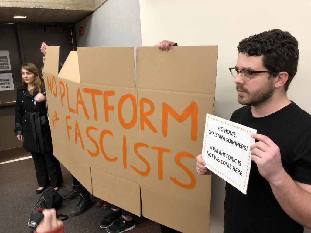 Protesters try to disrupt @CHSommers lecture. They demand that she take questions now.pic.twitter.com/CadwW1Nkcg