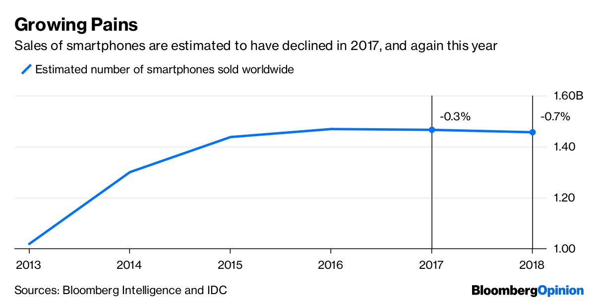 People are keeping their iPhones for longer. In 2014, people kept their smartphones for an average of two years. Now they'll keep them for three years or more https://bloom.bg/2CQ2KL9 pic.twitter.com/qQ11nZYEo5