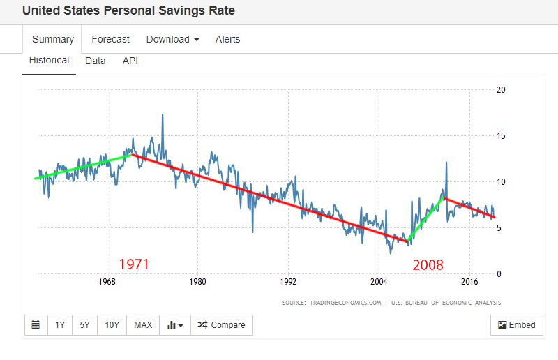 Foregoing purchases to take advantage of this phenomenon is natural savings, deffering spending to take advantage of progression of society. But nominally targeted inflation usurps this market phenomenon. Savings rates decline with inflation, debt levels increase.pic.twitter.com/80NhL5Xe6t