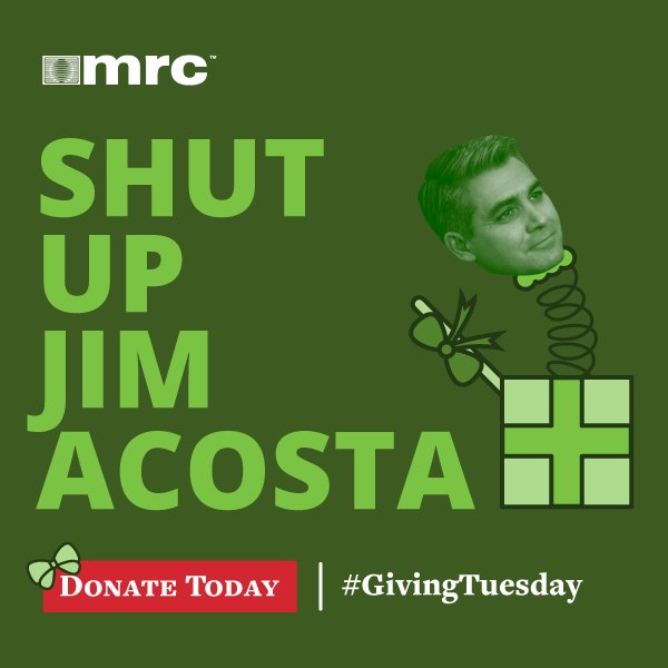 Is there anyone more unhinged than CNN's Jim Acosta? Click here to send him a message and support the MRC! https://goo.gl/uGd1U1 #GivingTuesdaypic.twitter.com/5j8qBwKZjR