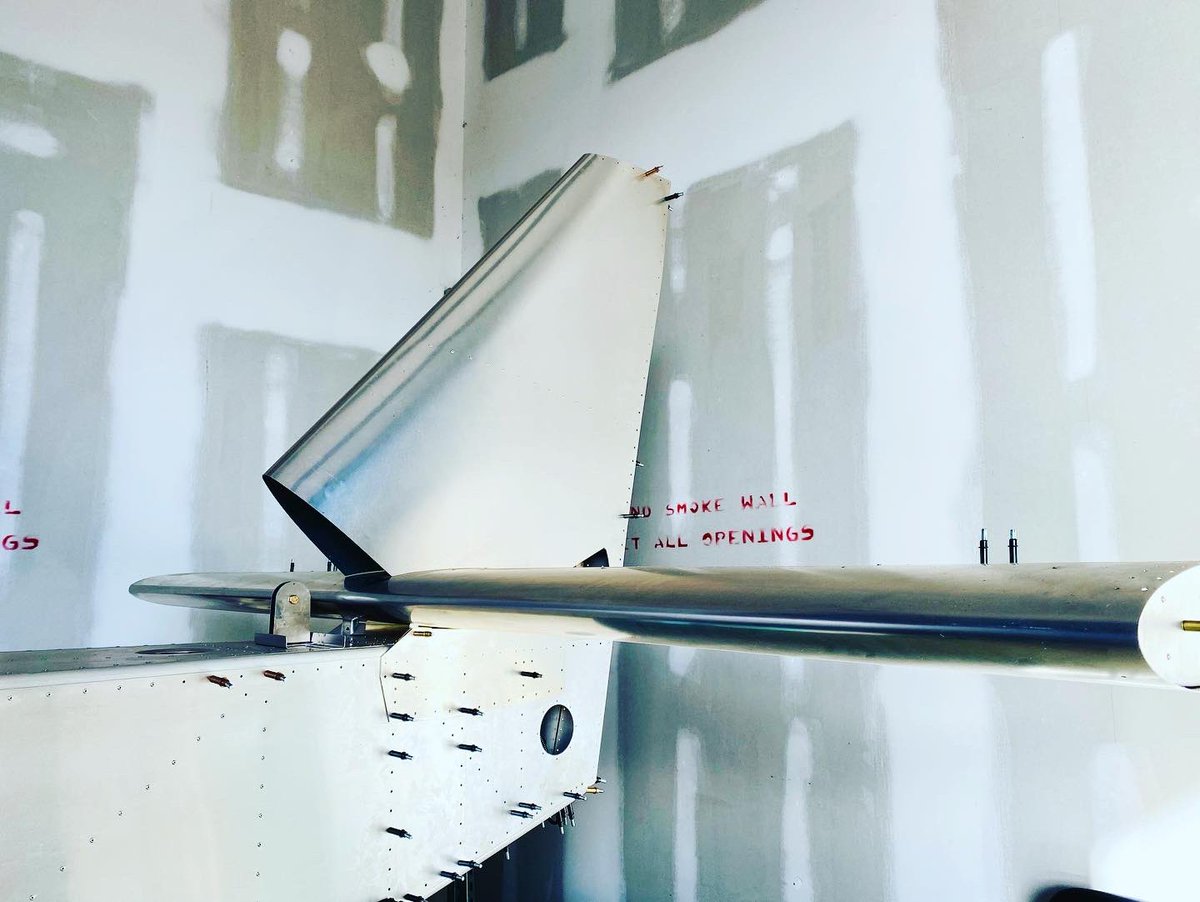 Very happy with progress this morning. So good to be back at this. Tail is back on it, closer to being permanently mounted. That skin on the front is going to need a fair amount of trimming next.