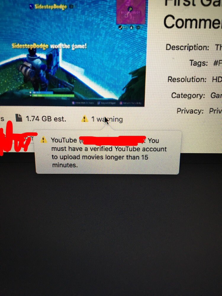 No other error messages pop up. It uploads like normal, but the final version of the video is six minutes shorter. However, on iMovie, it says my account isn’t verified even though it is on YouTube’s websitepic.twitter.com/THmfkA0x9t
