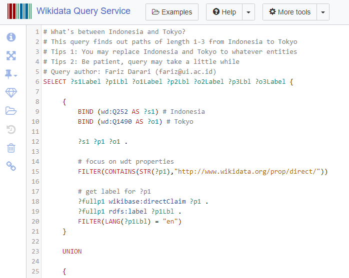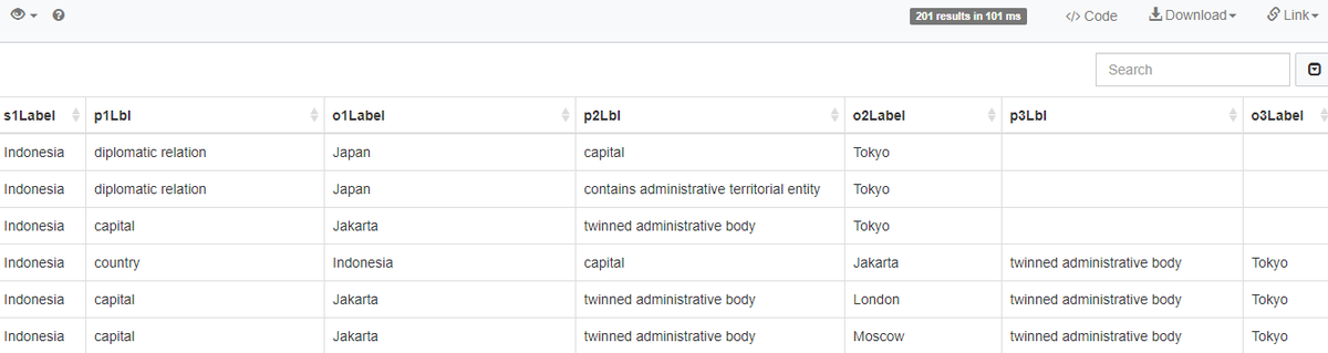 @wikidata query finds out paths of length 1-3 from Indonesia to Tokyo. https://s.id/8POou#sparql#wikidata#knowledgegraph#ai#semanticwebpic.twitter.com/wzL3smfVHs