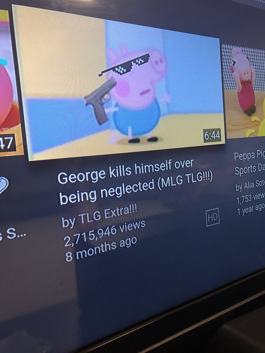 My 2 YO was watching @peppapig on YT and we stumbled upon this gem 😳 I don’t understand why MY family-friendly channel is demonetized & there is TRASH like THIS running on YT. 2.7 MILLION VIEWS #smh Wow @YouTube & @TeamYouTube. Just wow. #pleasetakethisdownpic.twitter.com/rDEeLqL3oU