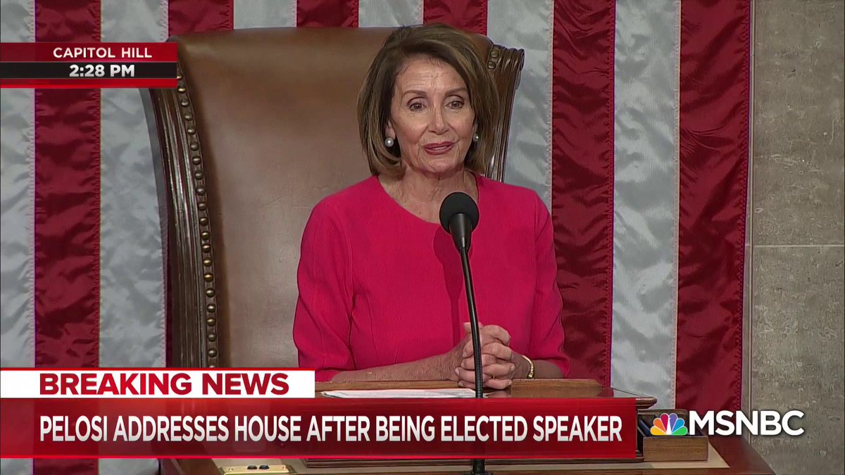 WATCH: Speaker Pelosi takes gavel from House Minority Leader McCarthy. http://nbcnews.to/2BYicDj pic.twitter.com/3AIEHxS614