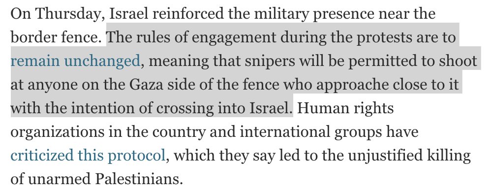 @haaretzcom calls these one-sided massacres an "engagement" ... you know, just heavily armed israeli soldiers stationed with snipers prepared to "engage" with palestinians by shooting them to death.pic.twitter.com/PP1CkZddjG