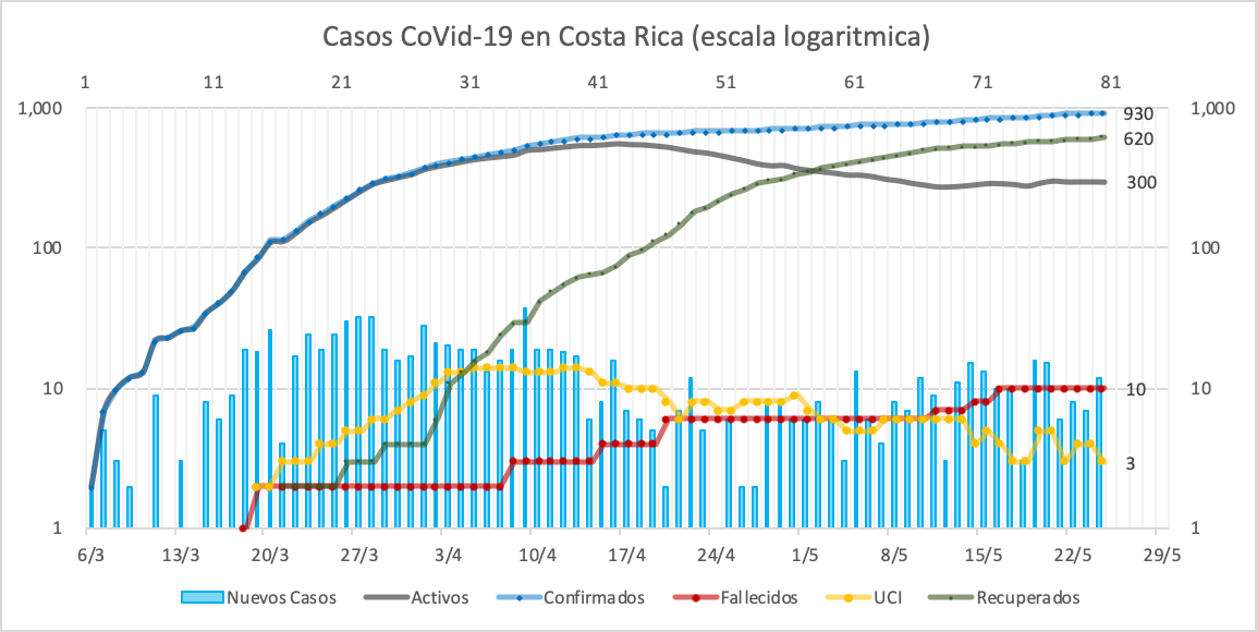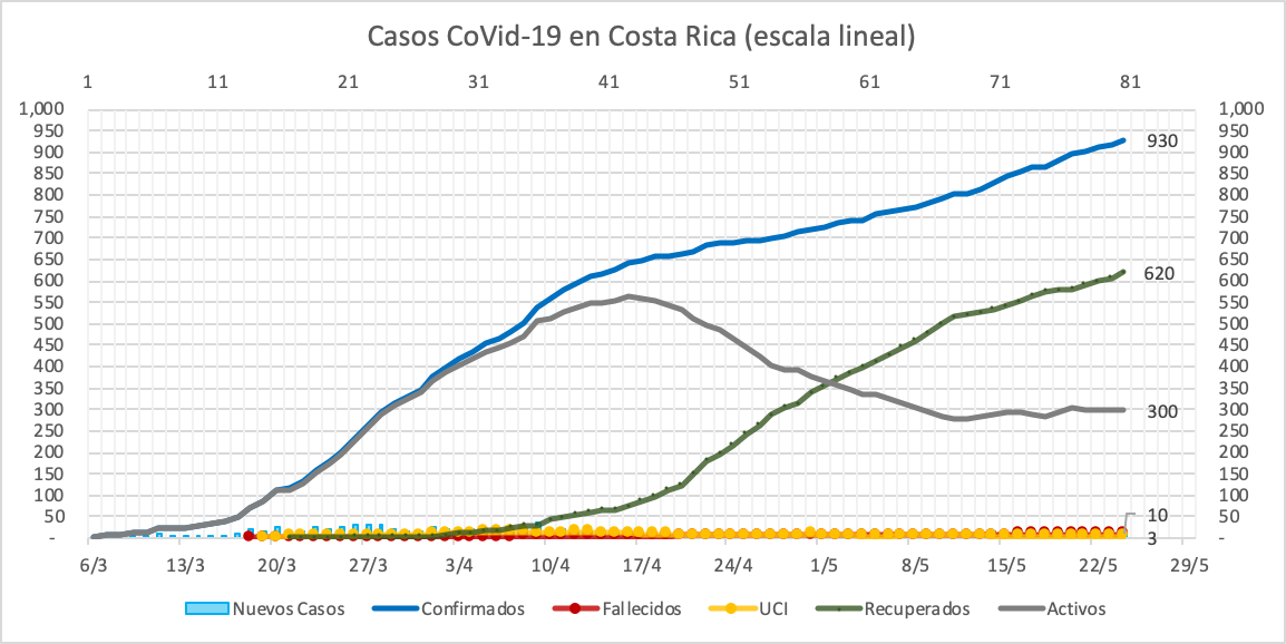 Evolución del contagio en Costa Rica al domingo 24 de mayo 2020.