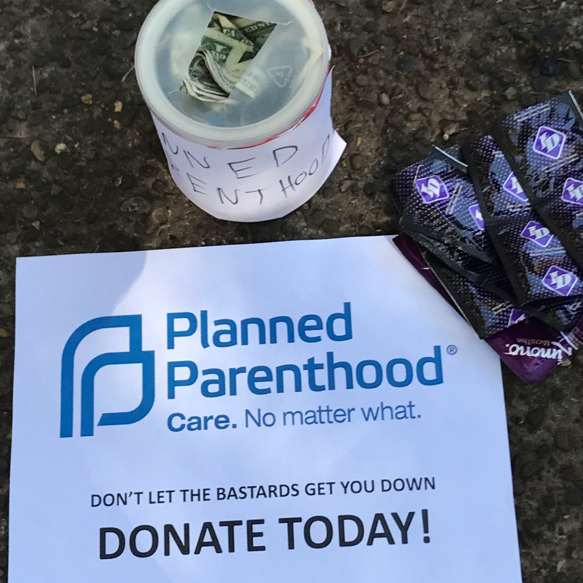 A collection for Planned Parenthood sits in front of the 2-story 'Abortion is Genocide' display in PSU Park Blocks.pic.twitter.com/aY67xBFEo2