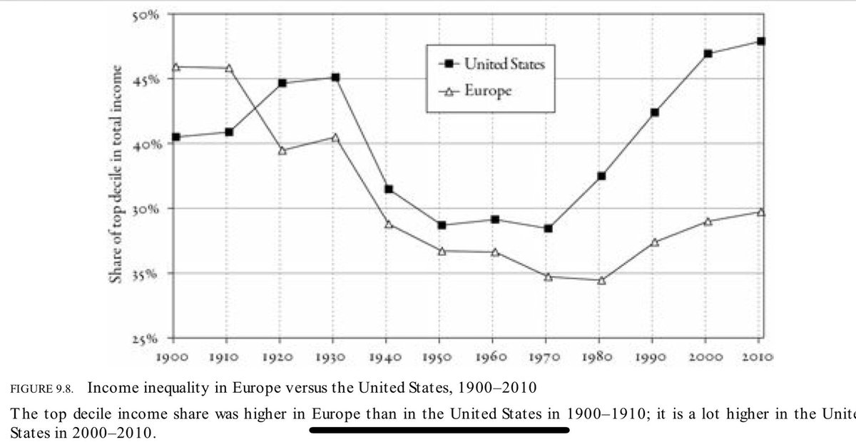This chart alone of the income going to the top 10% of workers in the US is stunning. Top 10% in the US take nearly 50% of total income vs 30% in Europe.pic.twitter.com/M9jvqS85aa
