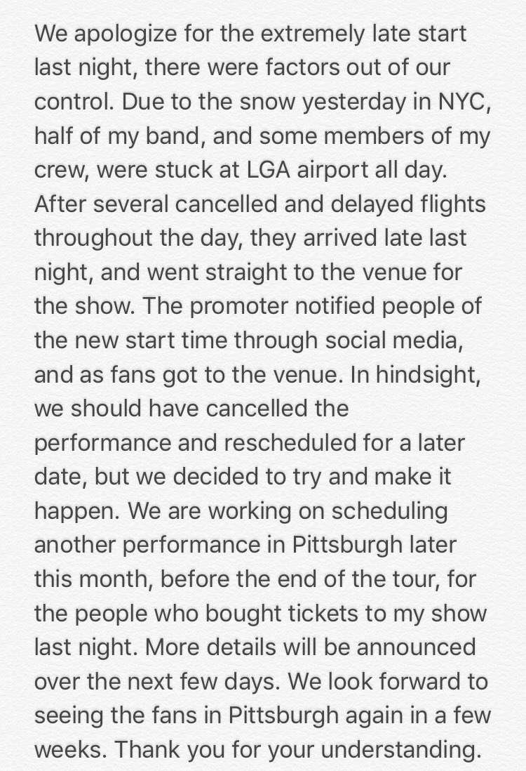 To my fans in Pittsburgh: