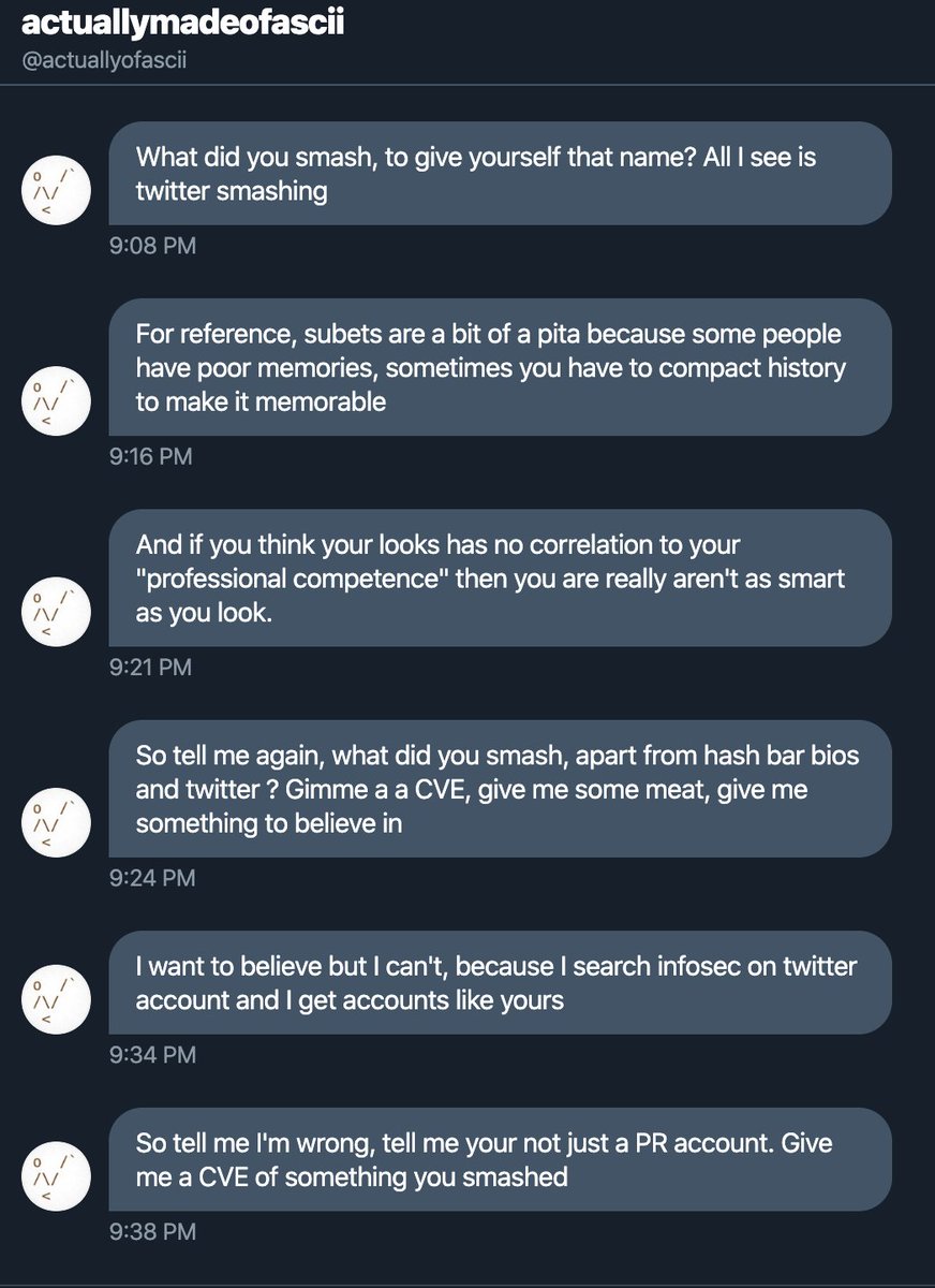 I tried to explain this tweet to my coworkers and they said 'Do you want a CVE? We'll get you one'. I said that wasn't what the tweet meant and they said, 'Naw, definitely sounds like you want a CVE'