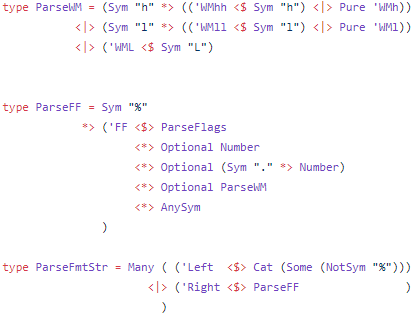 and...here's how nice it makes my final parser look :) on one hand it speaks to the power/adaptability of "first-class" parser combinators, how they can be used to simplify code in so many diverse/hostile situations on the other hand is the feeling of inescapable dread & terrorpic.twitter.com/99CijiUo32