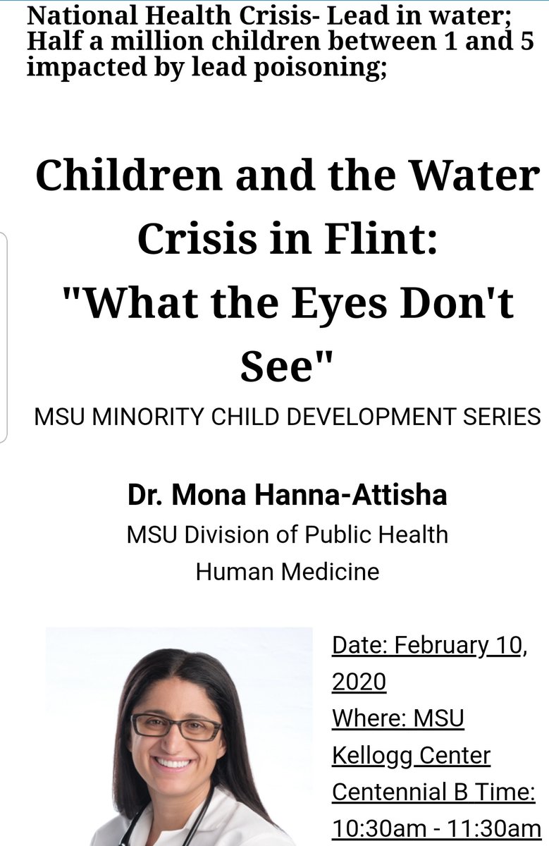 FEB,10. A revealing discussion of lead history in Flint water & environment as intertwined with politics, the social trajectories of poor people, & health policy. The impact on children's education, health, & development, devastating.