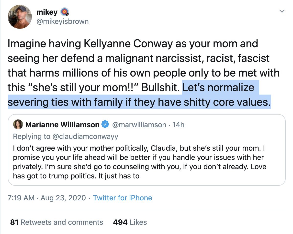 Let's say your family members politics are fascist adjacent? Still remain friends? Genuine question.