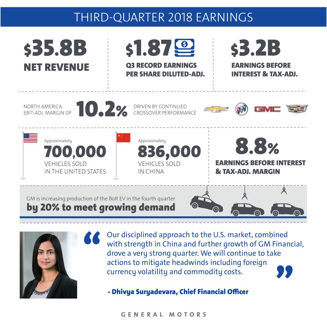 Our third-quarter performance demonstrates our determination to manage risks and deliver strong business results while continuing to advance the future of mobility.https://twitter.com/GM/status/1057596053376192512 …
