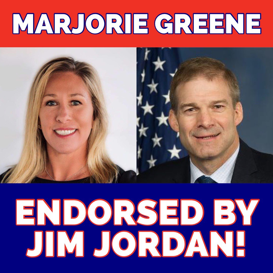 1. Honored to get endorsed by the founder of the Freedom Caucus, @Jim_Jordan! “Marjorie Greene is a strong conservative, political outsider, and successful businesswoman. She is exactly the kind of fighter needed in Washington to stand with me against the radical left." #gapolpic.twitter.com/DXfyYRAJix