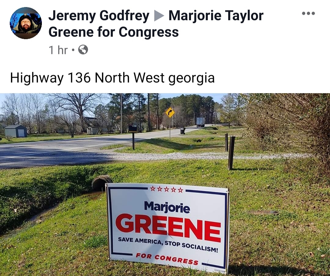 Thank you everyone across Georgia's 14th CD for your generous support ... and for putting a sign in your yard or property! Keep up the heat ... I will see y'all on the trail! People over politicians! Save America, Stop Socialism! #sass #gapolpic.twitter.com/6dYMowubHG