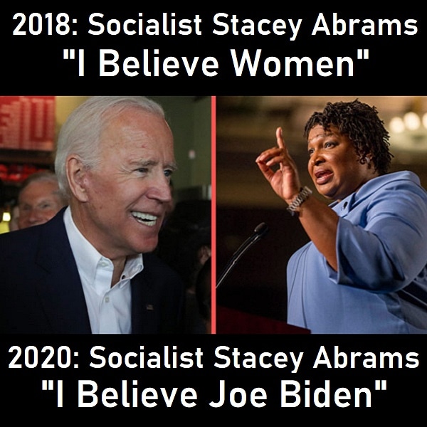 Socialist Stacey Abrams "believed all women" when Justice Kavanaugh was getting savaged by hate America Democrats and the Fake News media ... ... but now she's all in for Sleepy Joe?!? Stacey is a legend in her own mind, desperate for power so she can crush our rights. #gapolpic.twitter.com/KhekHSuJTW