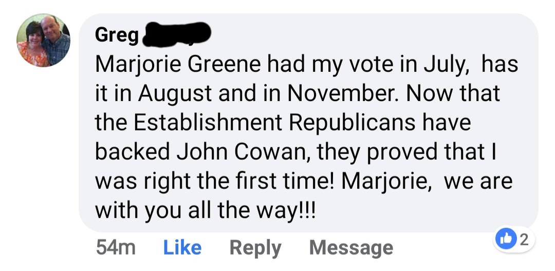 Thank you, Greg! It's more clear than ever ... it's the People versus the Swamp. Greene wins August 11th! #gapol #sasspic.twitter.com/OmAQrMxKDc