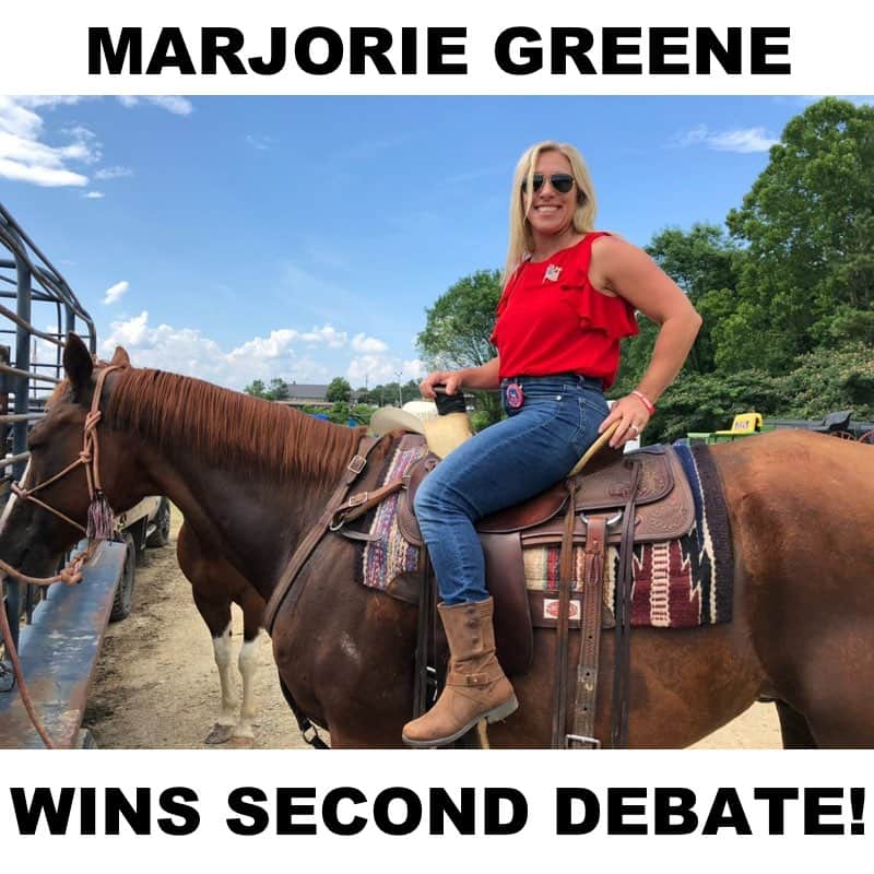 Friendly reminder: Marjorie Greene is a #QAnon follower that’s also endorsed by white supremacists. Electing people like this will only make America more dumbed down than it has been and more racist. The GOP may distance themselves from her, but they want her to win. #GhostSkinspic.twitter.com/SfHD7R6JnQ