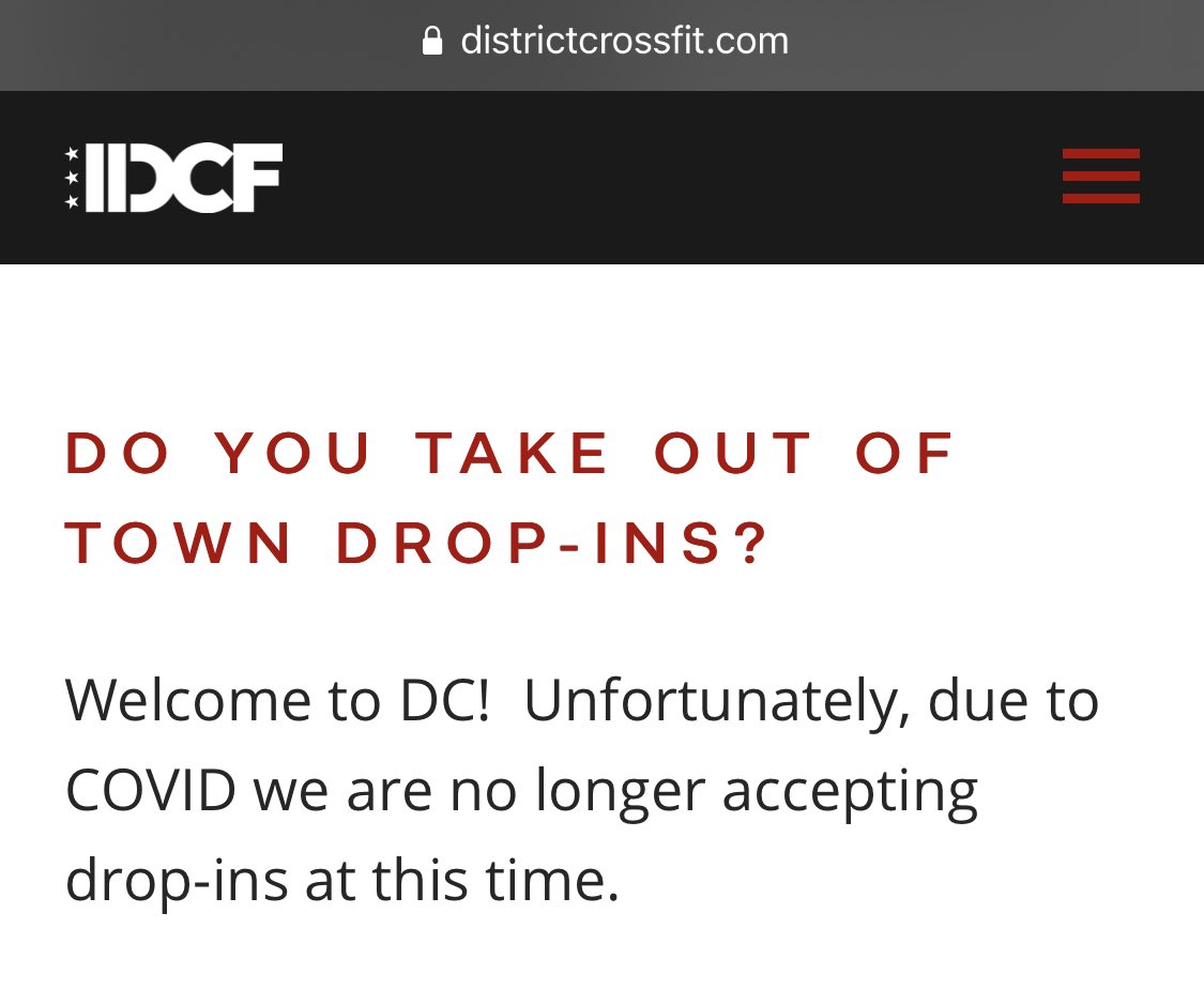 I work out everyday in a CrossFit gym that is open. With people. Gyms are small businesses that have been devastated by the government mandated shut downs. In DC, NOTHING is open bc of Democrat tyrannical control. So here’s my hotel room workout. We must FULLY reopen!pic.twitter.com/oDsgGyhRvx