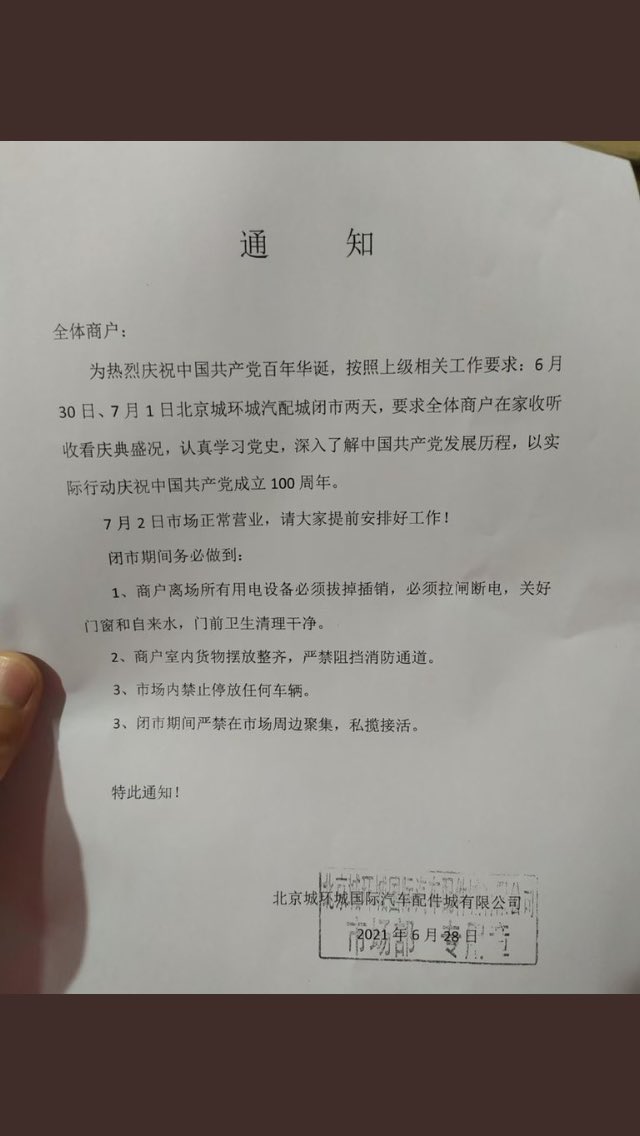 The CCP requires companies in Beijing to suspend business on the 100th birthday of the CCP to learn about the party’s history.pic.twitter.com/aT1bFUusMx
